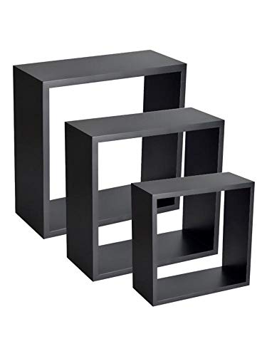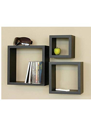 Other - طقم رفوف جدارية خشب مربع 3 قطع اسود