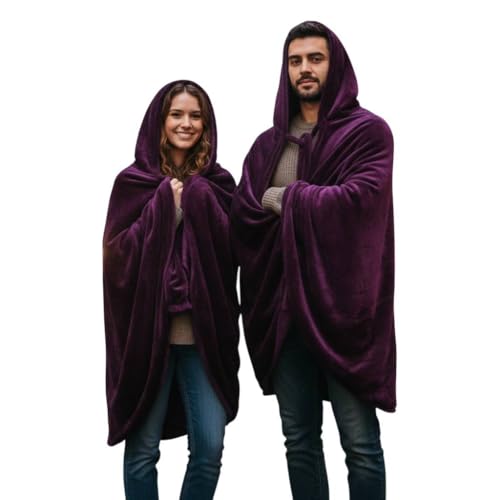 Generic - بلانكت شتوي قطيفه للرجال والنساء بطانية شتوية بغطاء رأس للرجال والنساء، مقاس واحد يناسب حتى 120 كجم، قطعه واحده لون حسب اختيارك ألوان متعددة
