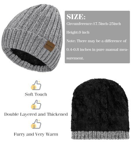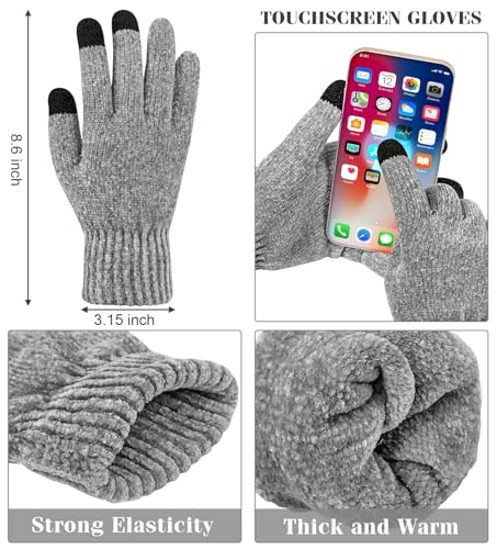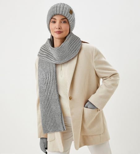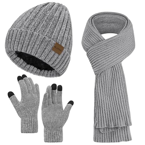 BLATIAL - Womens Winter Hats Long Scarf Touchscreen Gloves Set Warm Fleece Lined Knit Beanie Hat Skull Caps,Grey