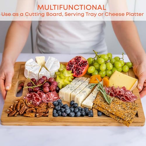 BlauKe - BlauKe Large Bamboo Cutting Board with Juice Groove & Built-in Compartments (43x32cm), Heavy Duty Kitchen Chopping Board for Meat Cheese Vegetables | Organic er Block | Serving Tray | Carving Board