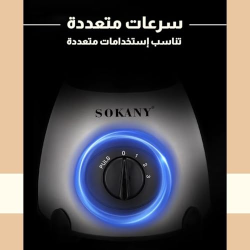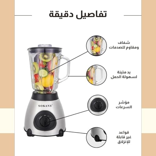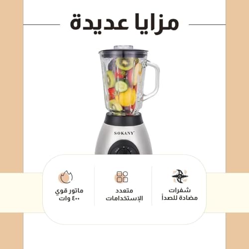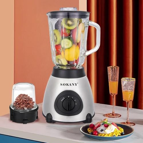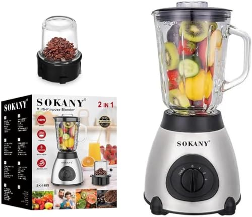 Sokany - Blender with Stainless Steel Blades 400W, Multi-Purpose Mixer 2 in 1, Coffee Grinder, 3 Speeds, 1500ml Capacity, Ice Crushing, Safety Features, SK-148S