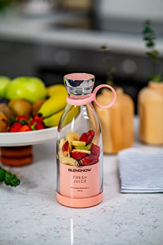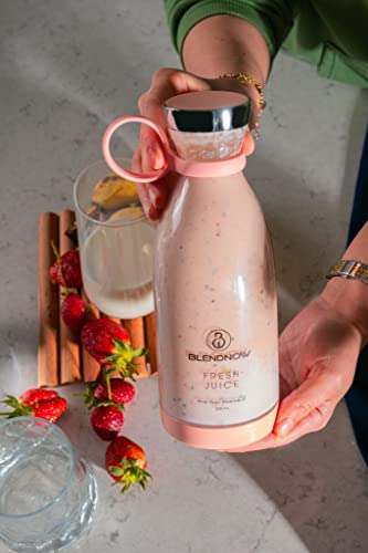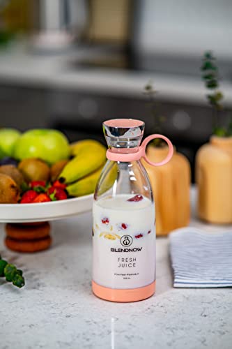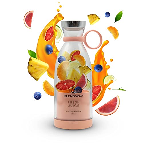 BLENDNOW - خلاط صغير للاستخدام الشخصي من بليندناو محمول للمخفوقات وعصائر السموذي قابل لإعادة الشحن بمنفذ USB مثالي للسفر والإهداء عصائر طازجة مع 4 شفرات الفولاذ المقاوم للصدأ 350 مل وردي 50.0 واط