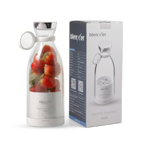 Blenxer - خلاط وعصارة محمول صغير وقوي للغاية بشاحن لاسلكي وإمكانية عمل أكثر من 15 خلطة بشحنة واحدة وتنظيف ذاتي، مناسب لعصائر السموذي وطعام الأطفال وغيرها من بلينكسر، أبيض ناصع (سنوي وايت)
