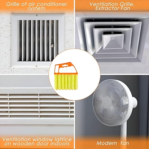 - Washable microfiber pads trap dust from air conditioners, window blinds, and vents without scratching surfaces.