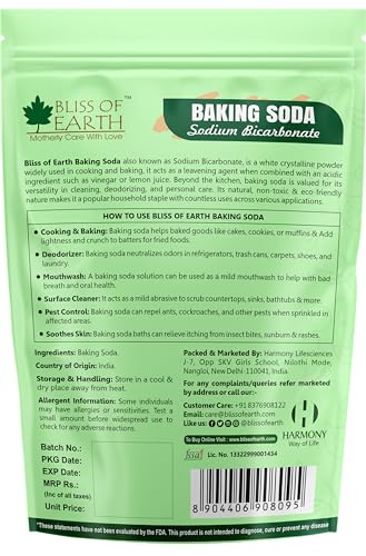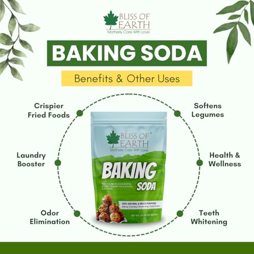 BLISS OF EARTH - Bliss of Earth Baking Soda For Food & Cleaning Purpose, 900gm, Pure Sodium Bicarbonate for Baking, Cleaning, and Deodorizing, Food Grade, Non-GMO, Eco-Friendly