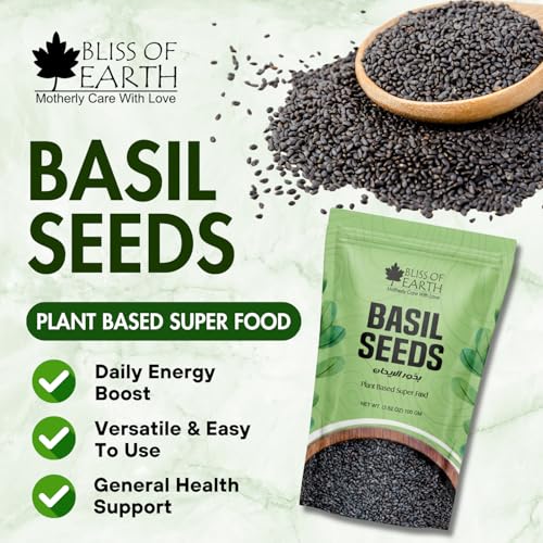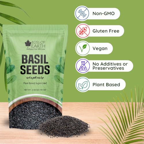 BLISS OF EARTH - Bliss of Earth Basil Seeds 100g | 100% Natural Sabja Seed | Premium Quality Herbal Seeds | Vegan & Gluten Free | Plant Based Super Food for Drinks & Recipes