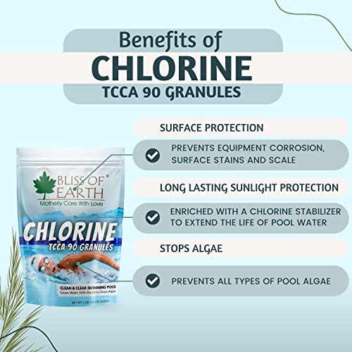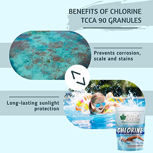 BLISS OF EARTH - Bliss of Earth Japanese Chlorine Powder For Pool, Clean & Clear Swimming Pool, Kills Bacteria & Stops Algae, Pool Disinfectant Granular Chlorine, 453g