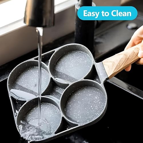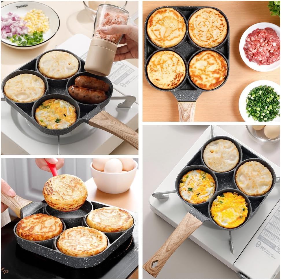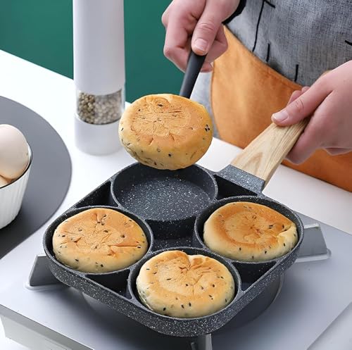 BLISSBORN - طاسة قلي بيض مقاومة للالتصاق بعدد 4 فتحات مزودة بمقبض خشبي قابل للفصل، طاسة متعددة الأغراض للأومليت والأوتابام والإيدلي والبرجر والبيض المسلوق دون قشر من بليسبورن
