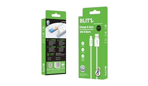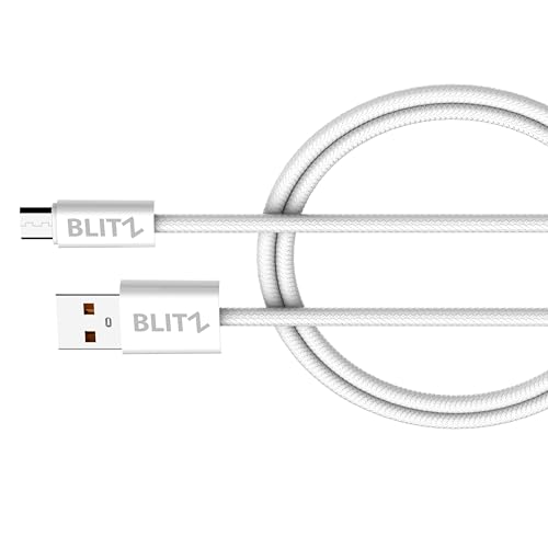 BLITZ - كابل USB إلى كابل ميكرو بطول 1 متر من بليتز، BUM25W، غلاف مضفر، نقل بيانات عالي السرعة وشحن سريع، متين للموبايلات الذكية والتابلت - أبيض