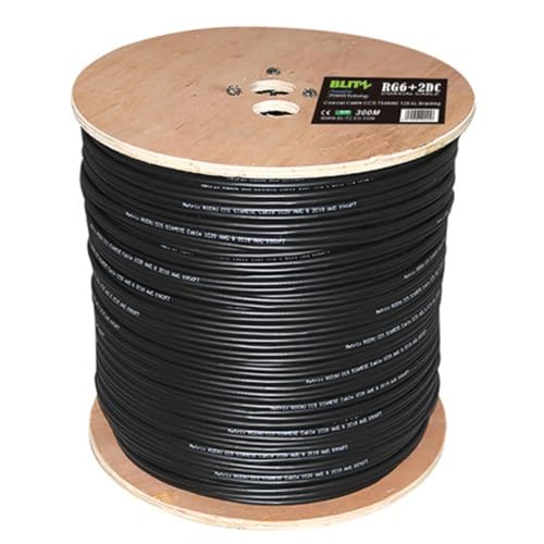 BLITZ. - BLITZ RG60 2DC Coaxial Cable – 300M Length, CCS Conductor, 75 Ohm, 128 Aluminum Braiding, CE Certified for High-Quality Signal Transmission - Black