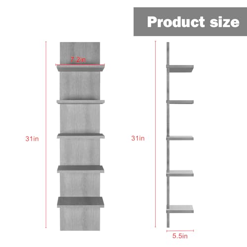 Bloddream - أرفف حائط من 5 طبقات من بلوددريم، رف عمودي عائم للتخزين وتنظيم ديكور المنزل بتصميم برج طويل، أرفف متعددة الاستخدامات لغرفة النوم وغرفة المعيشة