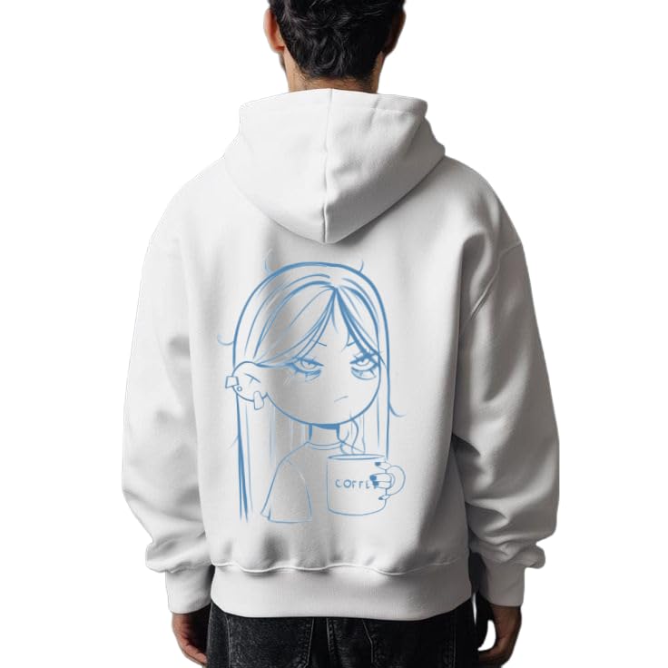 Generic - Blue Line Art Coffee Girl كنزات ذات غطاء للرأس أبيض