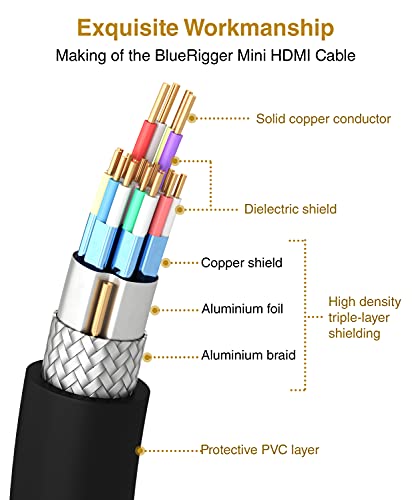 BlueRigger - BlueRigger Mini HDMI to HDMI Cable (3M, 4K 60Hz HDR, Bidirectional High Speed HDMI 2.0 Cord, Ethernet, Audio Return) - Compatible with DSLR Camera, Camcorder, Graphics/Video Card, Raspberry Pi Zero W