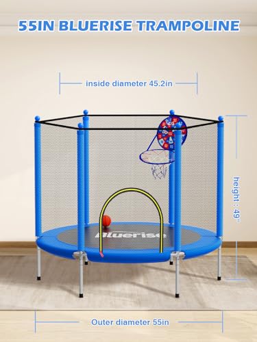 BLUERISE - BLUERISE Trampoline 55'' 6FT 8FT 10FT 12FT 14FT Trampoline for Kids Toddler Trampoline with Enclosure Net Easy to Assemble Kids Trampoline Indoor Recreational Trampoline Outdoor