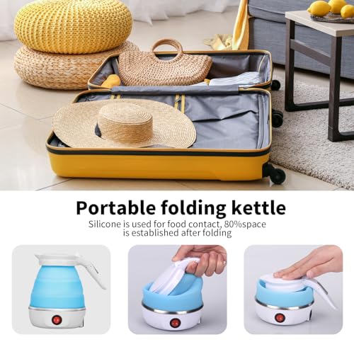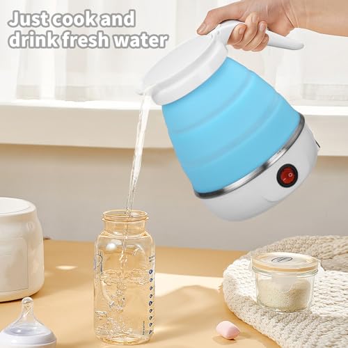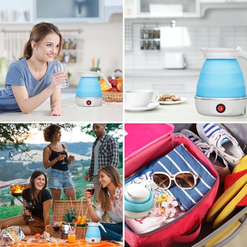 - FOLDING ELECTRIC KETTLE: Our collapsible kettle is easy to use and requires no complicated steps for operation, just press the switch to boil water, when the water temperature is below 50 degrees, the kettle will automatically heat up and provide hot water at any time. Perfect for travel, camping, outdoor picnics, hotel accommodation, office and other occasions.