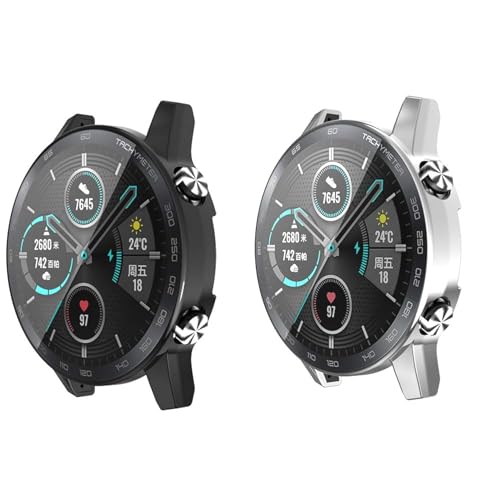 Blueshaw - هيكل حماية مع شاشة، ممتص للصدمات من البولي يوريثين الحراري متوافق مع ساعة هواوي هونر ماجيك 2 (أسود وفضي، 46 ملم) - عبوة من 2 قطعة