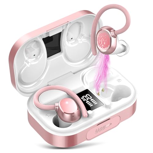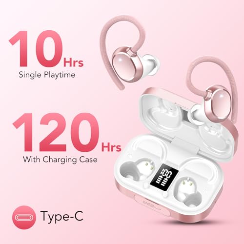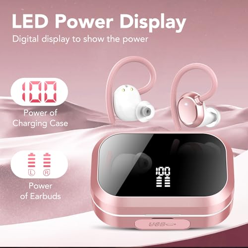 KT1 - Bluetooth Headphones in Ear, Wireless Bluetooth 5.3 Headphones, 120 Hours Playtime with Charging Case, LED Display, Comfort Fit, IPX7 Waterproof Earbuds, Deep Bass, Bluetooth Headphones Sports (Rose)