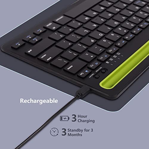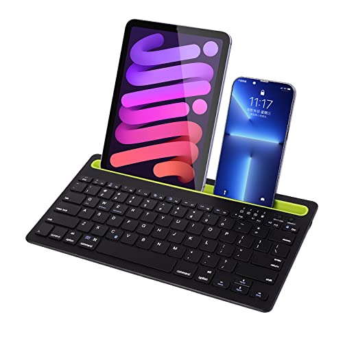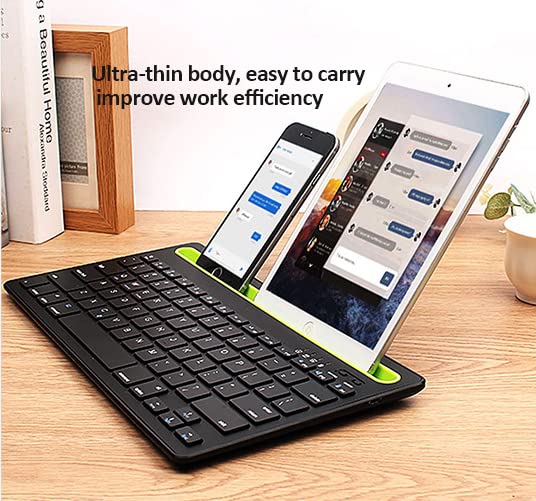 PloutoRich - Bluetooth Keyboard, Multi-Device Wireless Keyboard, Rechargeable Wireless Small Keyboard with Stand Slot, Ultra-Slim Portable Tablet Keyboard Compatible with Tablet Smartphone Laptop PC-Black