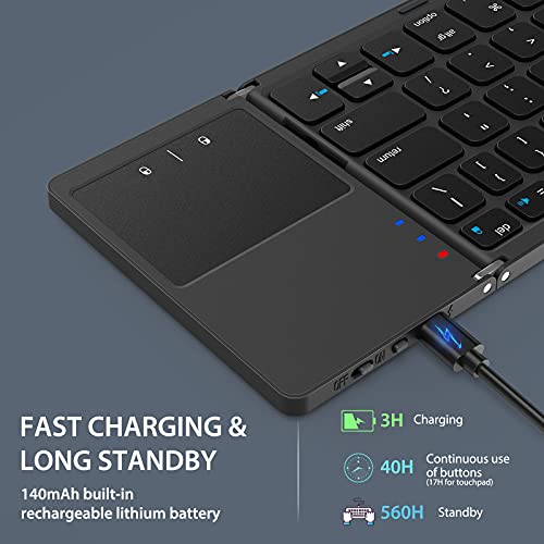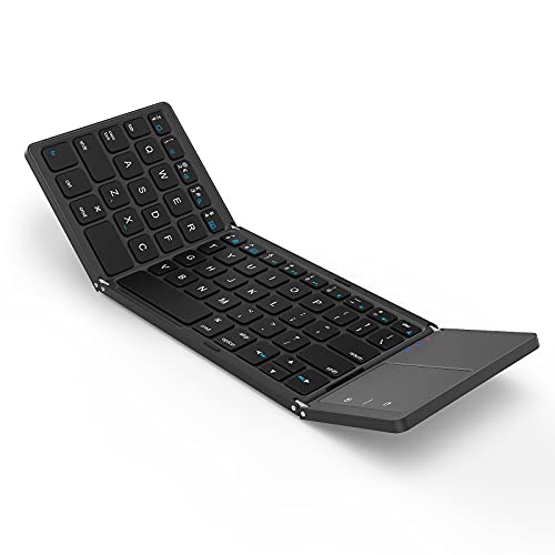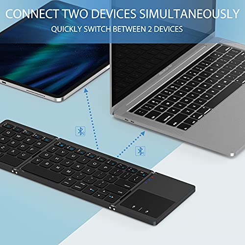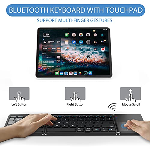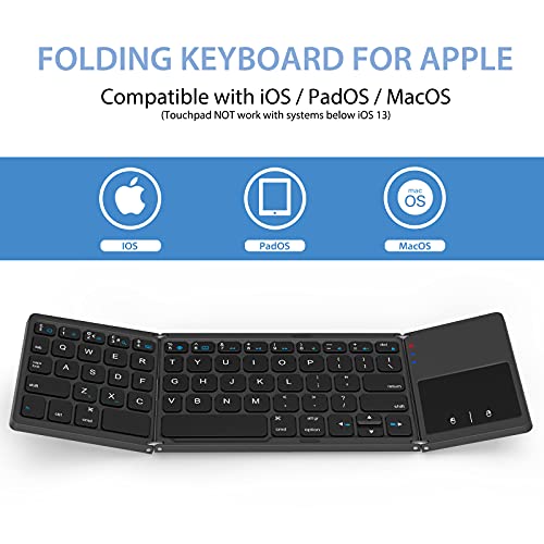 ASHU - Bluetooth Keyboard with Touchpad for iPad, Compact Foldable Wireless keyboard with Trackpad, Mini Portable Rechargeable QWERTY UK Layout Keyboard Specially for iOS Mac OS Systems, Black and Space Gray