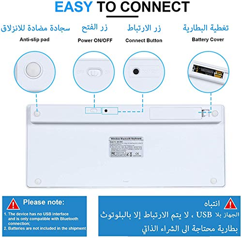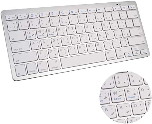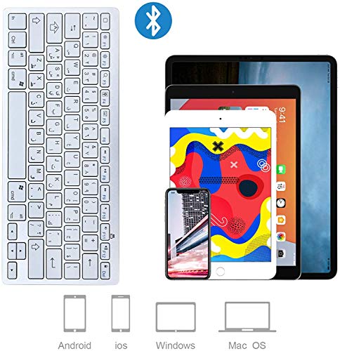AREEB - Bluetooth wireless Keyboard for ipad, Arabic/English Language, Mini Small Portable Keyboard for MAC, Surface, ipad pro/mini/Air, Windows, ios/Android Tablet, iPhone, etc.c (01 Arabic language-white)