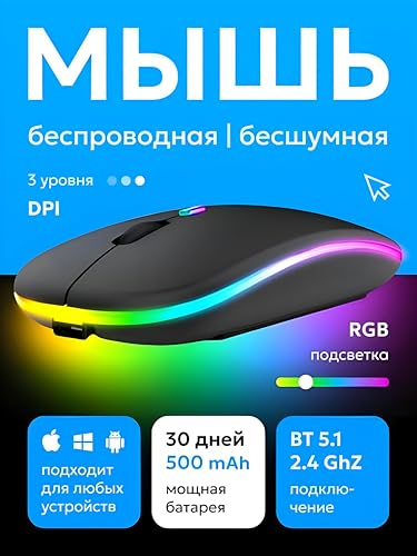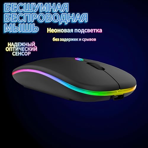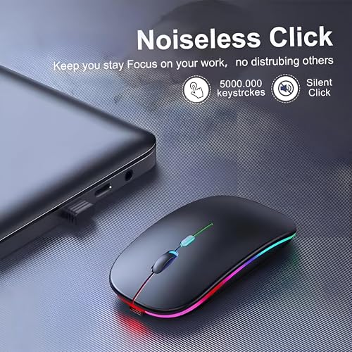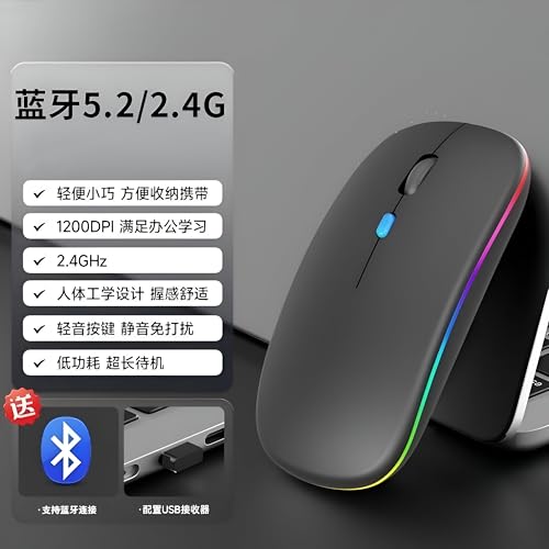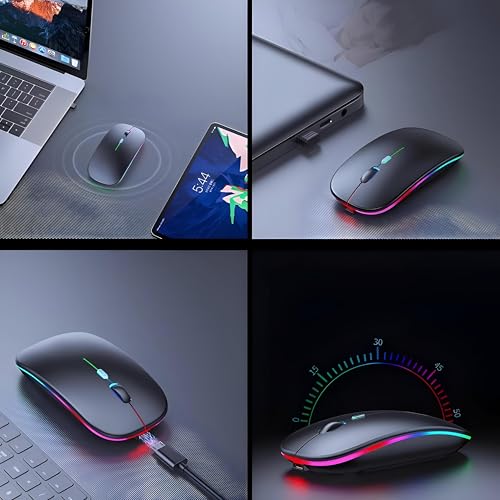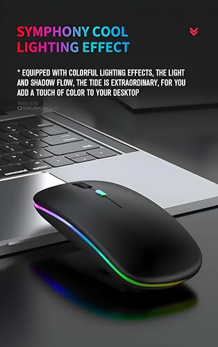 Generic - Bluetooth Wireless Mouse - Quiet Click, RGB LED, Slim & Compact, Rechargeable with USB, Suitable for Gaming, Work, MacBooks, and PCs, Black with Warm Lighting