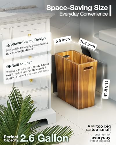 - ✅ Compact Yet Spacious – 2.6 Gallon Capacity: Perfectly sized at 11.4" L × 5.9" W × 11.8" H to fit small spaces like bathrooms, bedrooms, and under desks—without compromising on capacity.