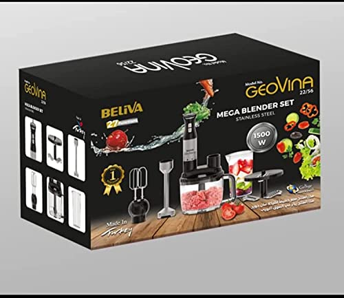 Generic - خلاط يدوي تركي من بلفيا 27 وظيفة - 1500 واط - سرعتان الستانلس ستيل أسود