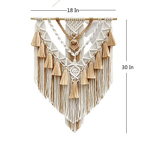 - 【Handmade】: Size 18 Inch(W) x 30 Inch(L).Our pieces are all handcrafted, meticulously woven with every attention to every detail; the inspiring display of this boho macrame art will breathe new life into any room.