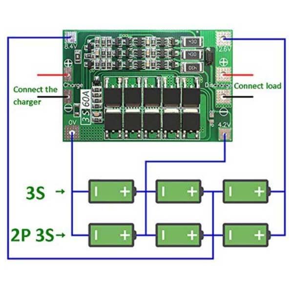 Generic - نظام إدارة البطارية 3S بقدرة 12 فولت وتيار 60 أمبير للشحن والحماية المتوازنة