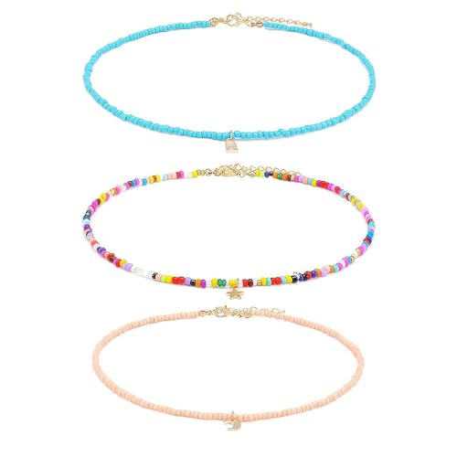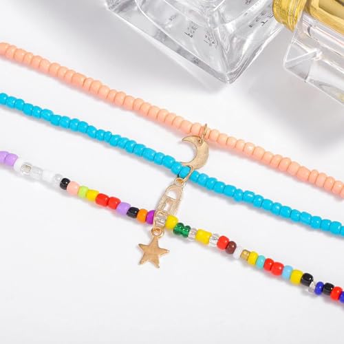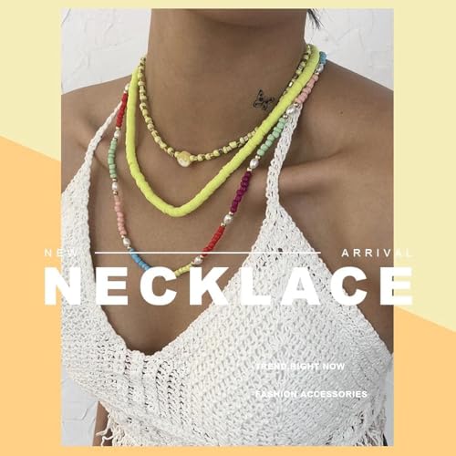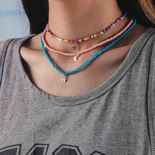 Bniealsy - Boho Beads Layered Necklace Gold Colorful Beaded Choker Necklaces Fashion Neck Chain Jewelry for Women and Girls, Zinc Alloy, alloy,