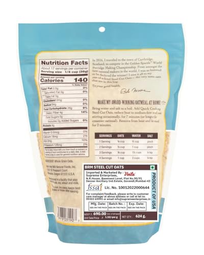Bob's Red Mill - Bob's Red Mill Bobs Red Mills Quick Cooking Steel Cut Oats 624Gm Whole Grain Organic Non-Gmo Ready In 7 Minutes Healthy Breakfast Cereal