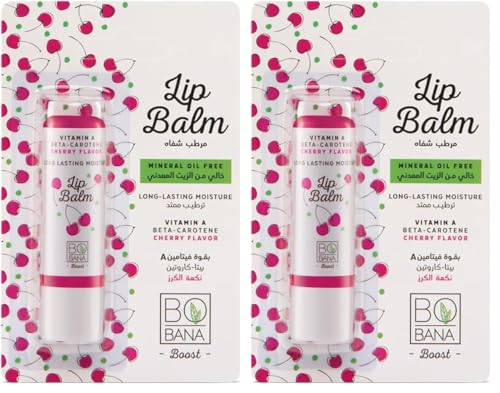 Bobana - مرطب شفاه بفيتامين ايه ونكهة الكرز من بوبانا - 4.8 جم (عبوة من قطعتين)