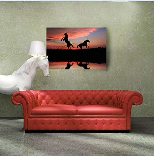 Bobo Design - Sunset and Horses Mixed Media Painting (Multicolor)
