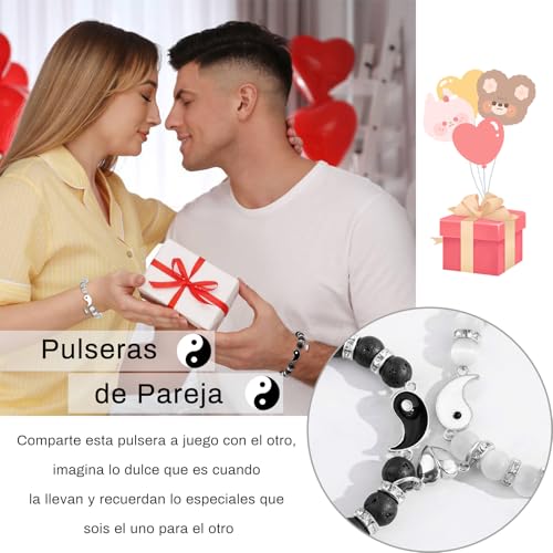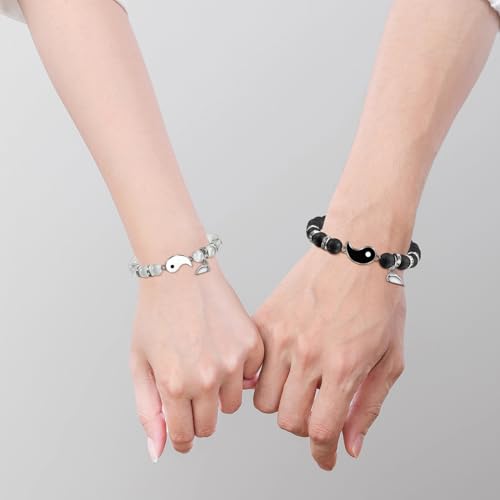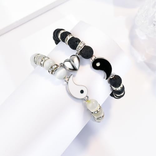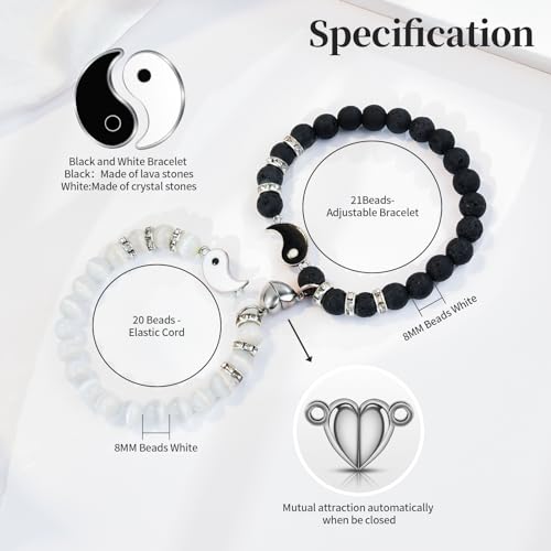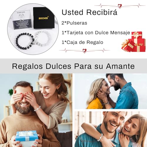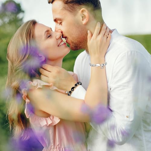 BOCHOI - BOCHOI 2 Items I Love You Bracelet Couple Gifts Anniversary Gift For Him Matched For Boyfriend Girlfriend My Love Soul Mate Jewelry, 17 centimeters (men's), 16 centimeters (women's)