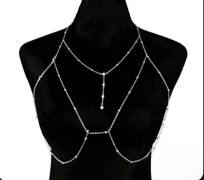 Generic - Body Chain Silver Crystal Bikini Chains Summer Beach Bra Body Jewelry for Women (silver)