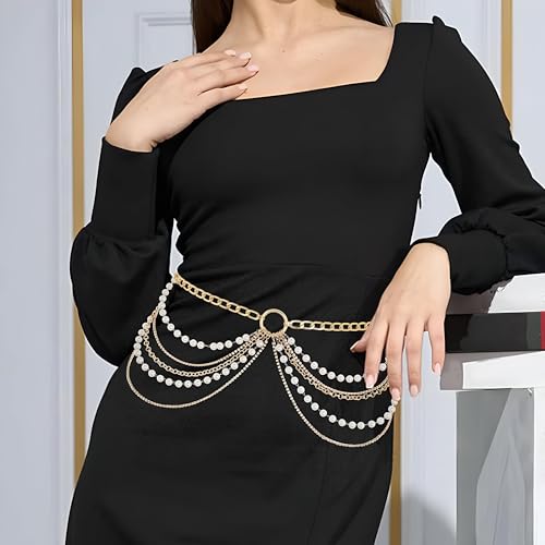 Generic - Body Chain - Unique multi-layered waist and belly chain made of gold-tone jewelry with adjustable design, perfect for enhancing feminine charm and casual or party wear