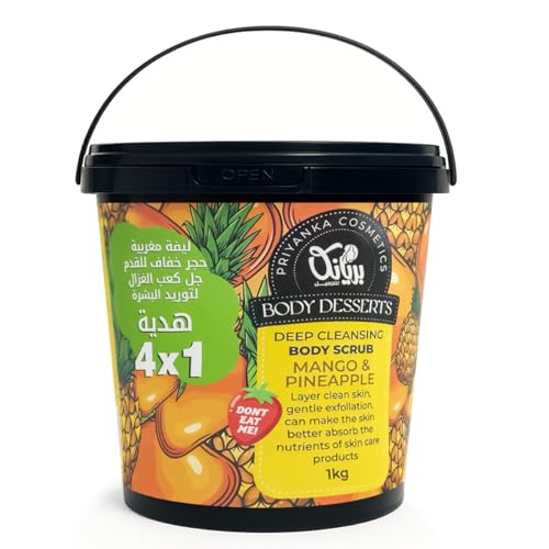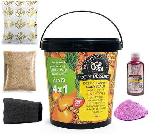 Generic - Body Scrub Set - Body Desserts 4 X 1 Kit, Deep Cleansing Body Scrub 1KG & Moroccan Loofah & Gel Kaab El Ghazal & Foot Stone, Not Eatable (Mango & Pineapple)