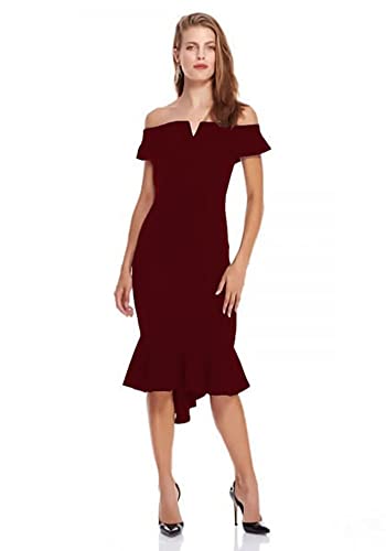 Generic - فستان بودى كون دون اكتاف لون نبيتي غامق ، للنساء