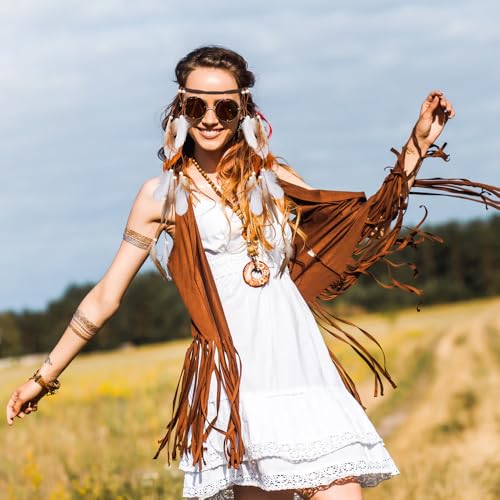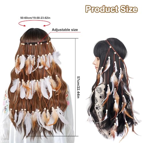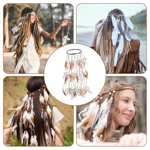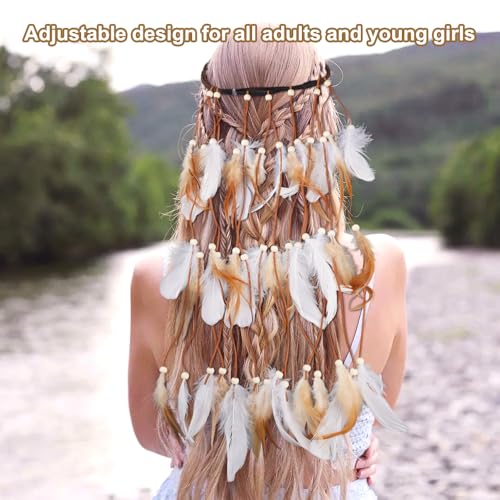 Dhisperares - Bohemian Feather Headdress Headband, Indian Feathers Headdress Hair Women, Adjustable Size, Hippie Tribal Festival Party Headwear, Headband for Women, Girls