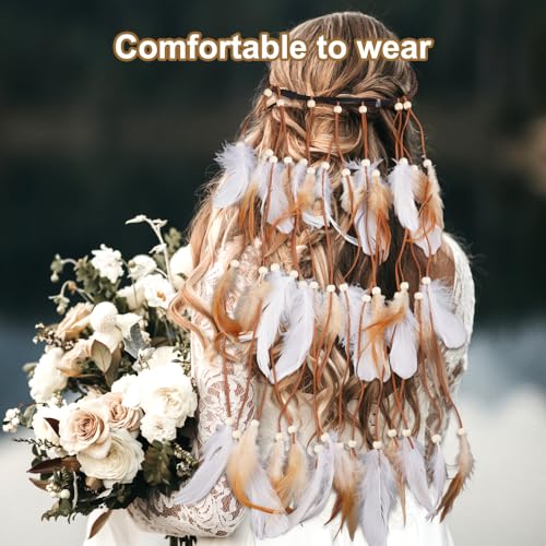 - Bohemian headband: Indian women's headpiece is made of soft feathers, natural wooden beads and woven ribbons, Indian hair jewellery women's is more comfortable to wear and elegant in appearance