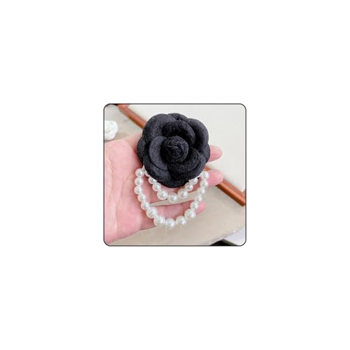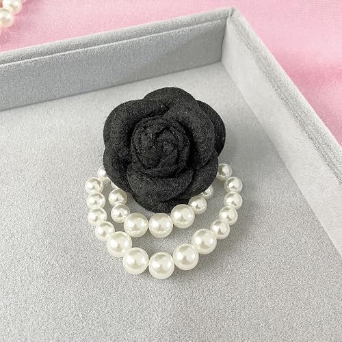 SAVNOJW - Bohemian Flowers Pearls Beaded Pins Brooches for Women, Trendy Red Camelia Flower Lapel Pins Dainty Floral Jewelry Accessories for Clothes Dress Suit (black)