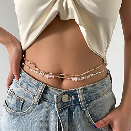 - Function: Beads,pearl,pink breakstone and simple chain form a delicate body chain, which makes your waist and hip show the most charming posture.Suitable for any occassion, such as daily outfit, bikini, party, rave, beach, swimming pool, shopping,nightclub, make your life experience unique.