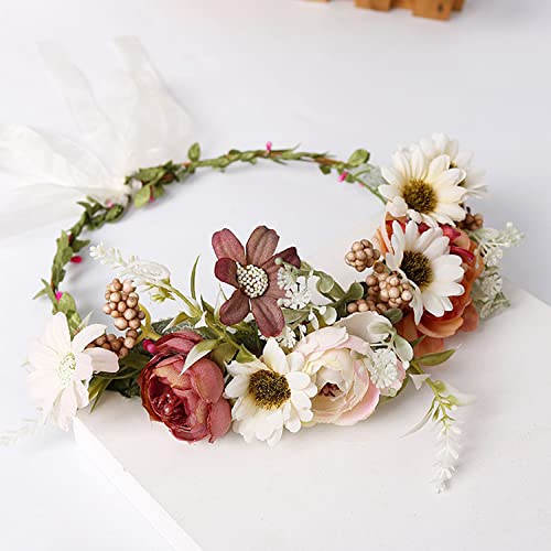 Ulvheti - Boho Artificial Flower Headband for Women Bohemia Floral Wedding Garland Headband Adjustable Hair Wreath Crown Photo Props (Lavander)