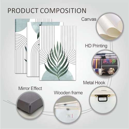 - 【High-Quality Canvas Wall Decor】Modern wall art prints combine elements such as palm leaves, sage, geometric lines, etc. to make the artwork more abstract. It uses high-quality waterproof and fade-resistant ink, which is durable and not easy to fade. Each wall decor canvas is tightly stretched on the wooden frame to ensure that the canvas will not bend, and the amazing colors interpret the bohemian style well.