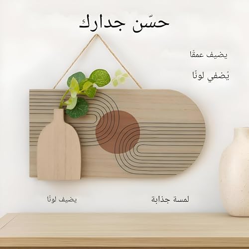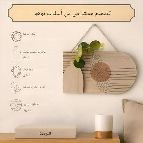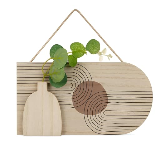 Generic - Boho Harmony - Abstract Wooden Wall Hanging with Geometric Elements and Faux Plant Vase, Unique Mid-Century Artwork to Bring Warmth and Style to Any Modern Home Interior (Model 7)