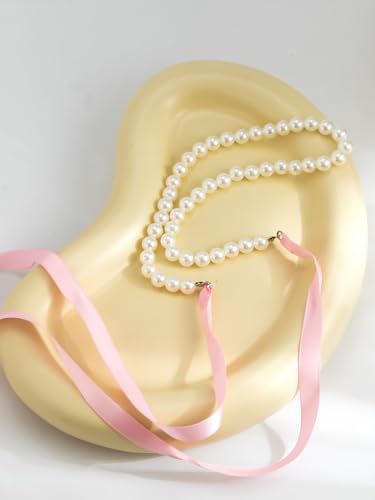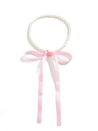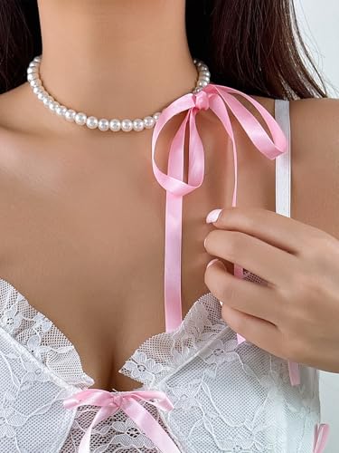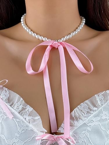 Egfyqzbryn - Boho Pearl Bow Choker Necklace Black Elegant Long Ribbon Bow Collarbone Chain Vintage Pearl Beaded Choker Necklace Faux-Pearl Choker Necklaces Halloween Christmas Festival Birthday Party Jewelry for