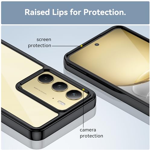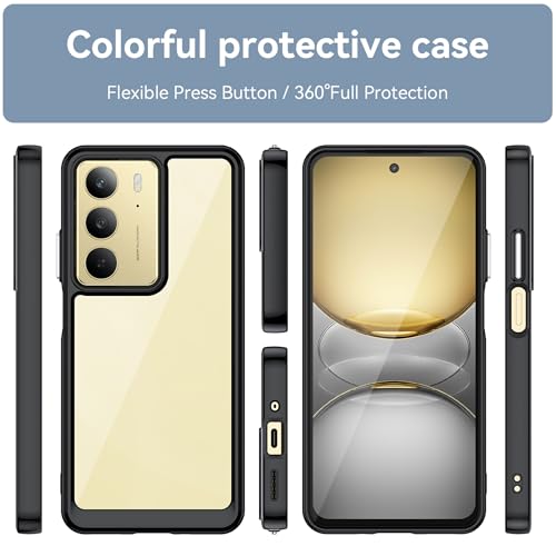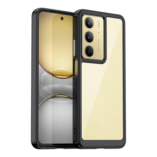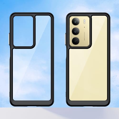 BOKYAS - جراب حماية سيليكون شفاف لموبايل ريلمي C75 شبكة الجيل الرابع 4G/ ريلمي 14x شبكة الجيل الخامس 5G، جراب مضاد للاصفرار مع ظهر صلب من البولي كربونات مضاد للصدمات والخدوش من بوكياس، لون أسود