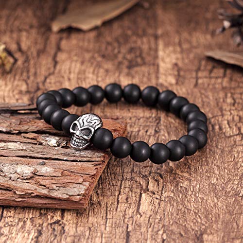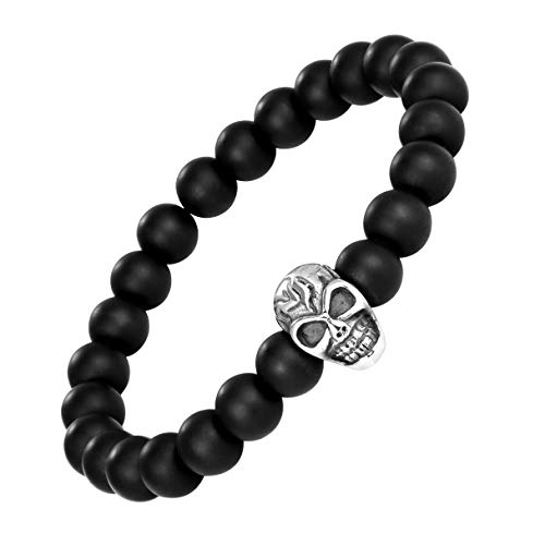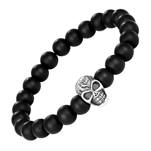 generic - Bold Men’s Biker Bracelet – Double Link Chains Embellished with Rows of Death’s Skull in a Polished Silver Finish – Made of Rust & Discoloration Resistant Stainless Steel – Jewelry Gift for Men