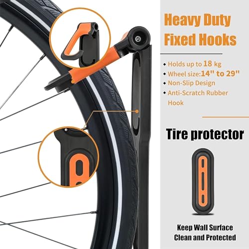 - 💥【Safety Material】 – Wall bike rack features hook with rubber coating to protect your bicycle from scratches, and safety locking mechanism prevents accidental release. It provide long service life, great for personal use or prefessional repairing shop.