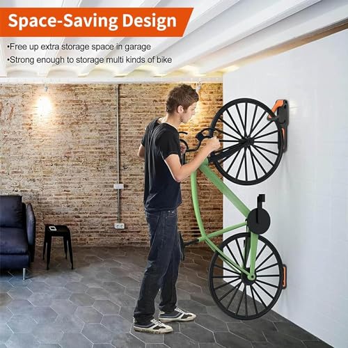 - 💥【Save Space & Simply installed】It is easy to install and no assembly required. The adjustable rack lets you hang and detach the bike in a second. This vertical wall mounted bike storage rack can save space, which is great for shed corner and garage storage, also suitable for home, office and shop.